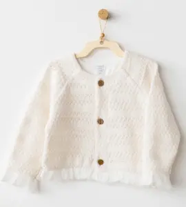 Cardigan tricotat crem pentru fetițe – elegant cu volănașe