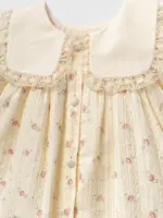 Transformă fiecare zi a fetiței tale într-o poveste cu această rochiță adorabilă. Creată special pentru pielea delicată a micuțelor, piesa combină eleganța clasică cu cel mai înalt nivel de confort. Imprimeul floral discret aduce un plus de veselie și rafinament oricărei ocazii.