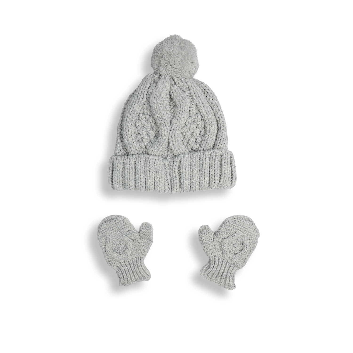 Set căciulă cu pompon și mănuși tricotate pentru bebeluși