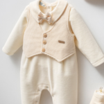 Oferă-i bebelușului tău un look impecabil cu acest set ivory sofisticat. Este combinația perfectă între stilul clasic și texturile moderne, creată special pentru a fi purtată la vizite în familie, ședințe foto sau ieșiri elegante.